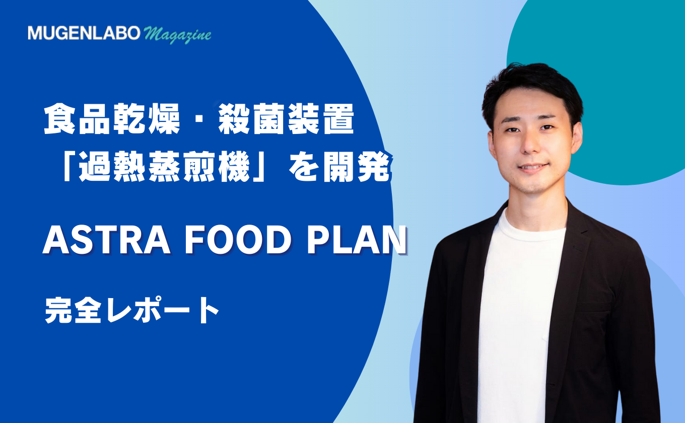 1社目はASTRA FOOD PLANです。食材の酸化や栄養価の損失を抑えた食品乾燥・殺菌装置「過熱蒸煎機」の開発をするスタートアップです。今回は、ASTRA FOOD PLAN 執行役員COOの渡辺 悠介氏にお話を伺いました。