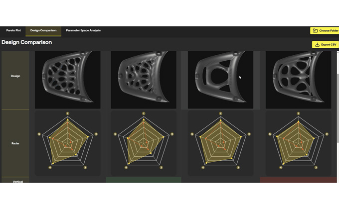 プロダクトは、まずブラケット類や内部補強といった構造部品の自動生成から始まります。素材物性・強度・振動・重量・製造制約などを同時に満たす設計案を高速に探索し、従来は時間をかけて行ってきた設計検討を大幅に短縮します。