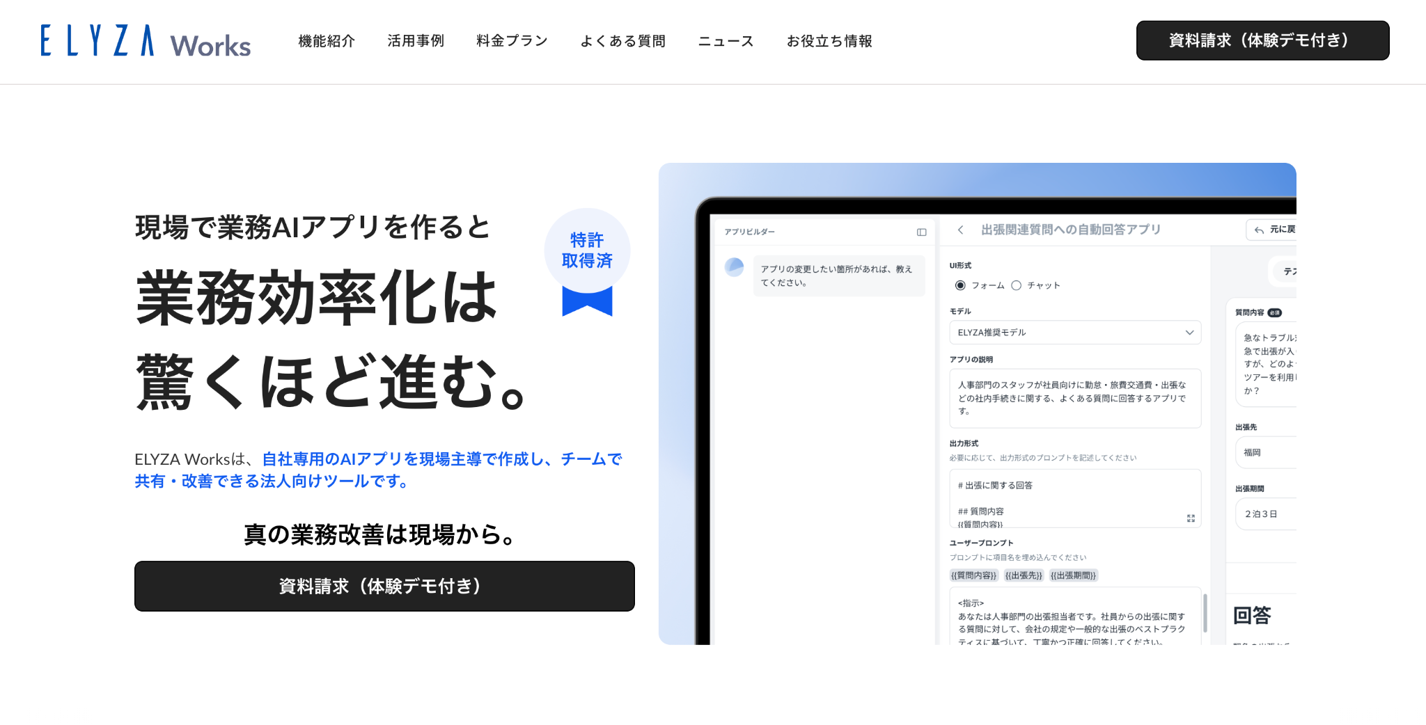 プログラミングの知識は要らない。従来の業務システムでは、こうした小さな改修でもチケットを切り、開発キューに並び、数週間待つのが当たり前だった。ELYZA Works はその待ち時間をゼロに近づけようとしている。