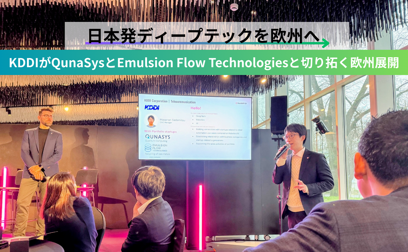 特に、量子コンピュータやレアメタルリサイクルなどのディープテックは、欧州の研究機関・事業会社・投資家との連携が、事業化やスケールの重要なドライバーになります。そこで今回、欧州最大級のスタートアップイベントであるSlushを起点に、KDDIが保有するネットワークやパートナーシップを活かし、出資先2社による欧州スタートアップエコシステムへの接点構築を支援しました。