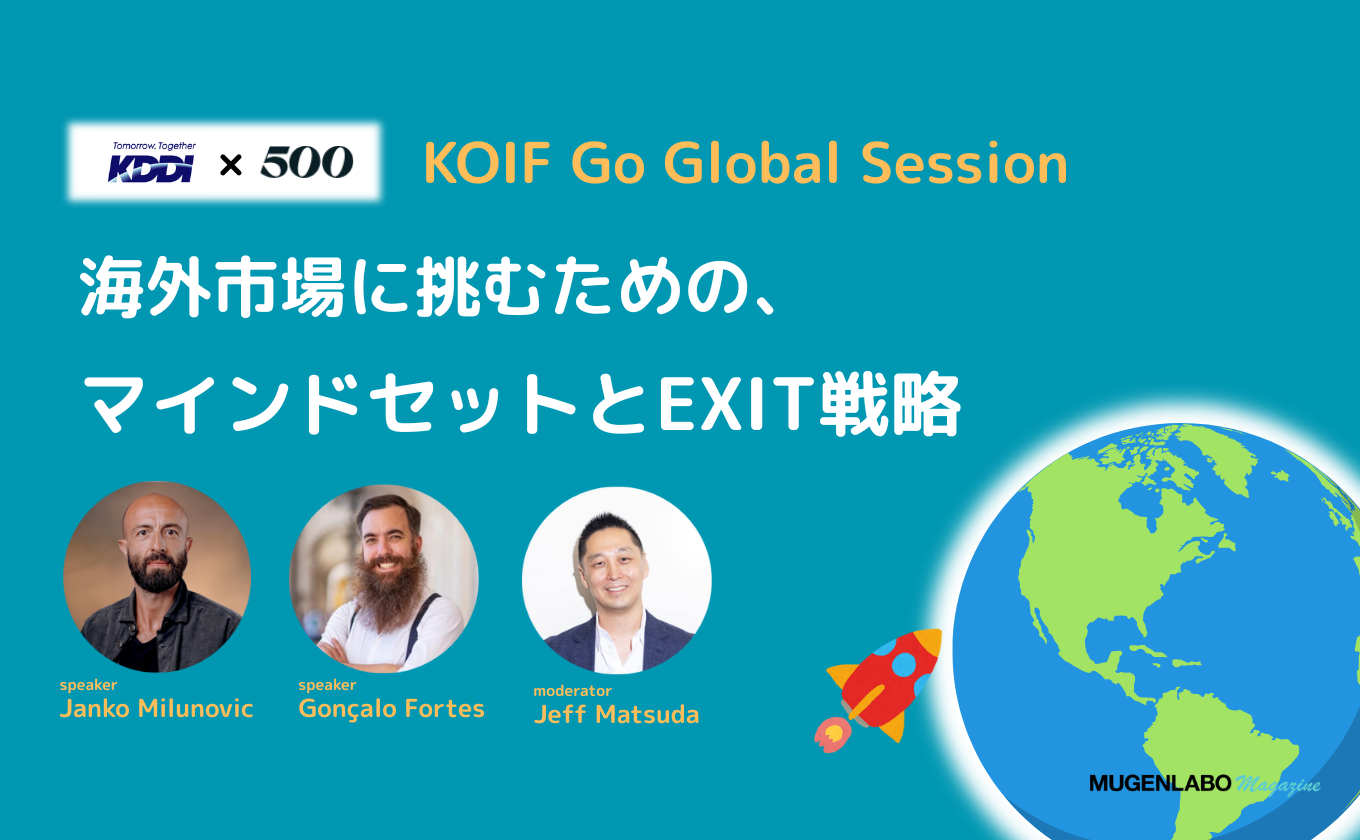 KDDIは500 Global社と共催で、「KOIF Go Global Session Vol.1」を開催した。本イベントは、海外展開時に必要なマインドや、生じる課題への対応力を身に着けることが目的だ。本記事では、グローバルビジネス有識者による「グローバルマインドセット」と「EXIT戦略」を深く掘り下げた2つのセッションの模様をお届けする。